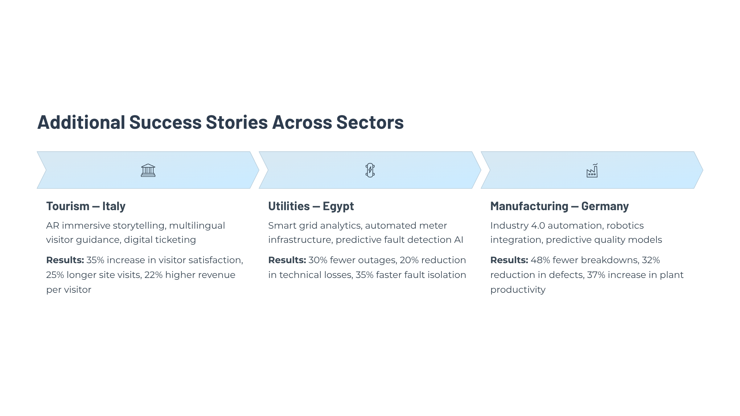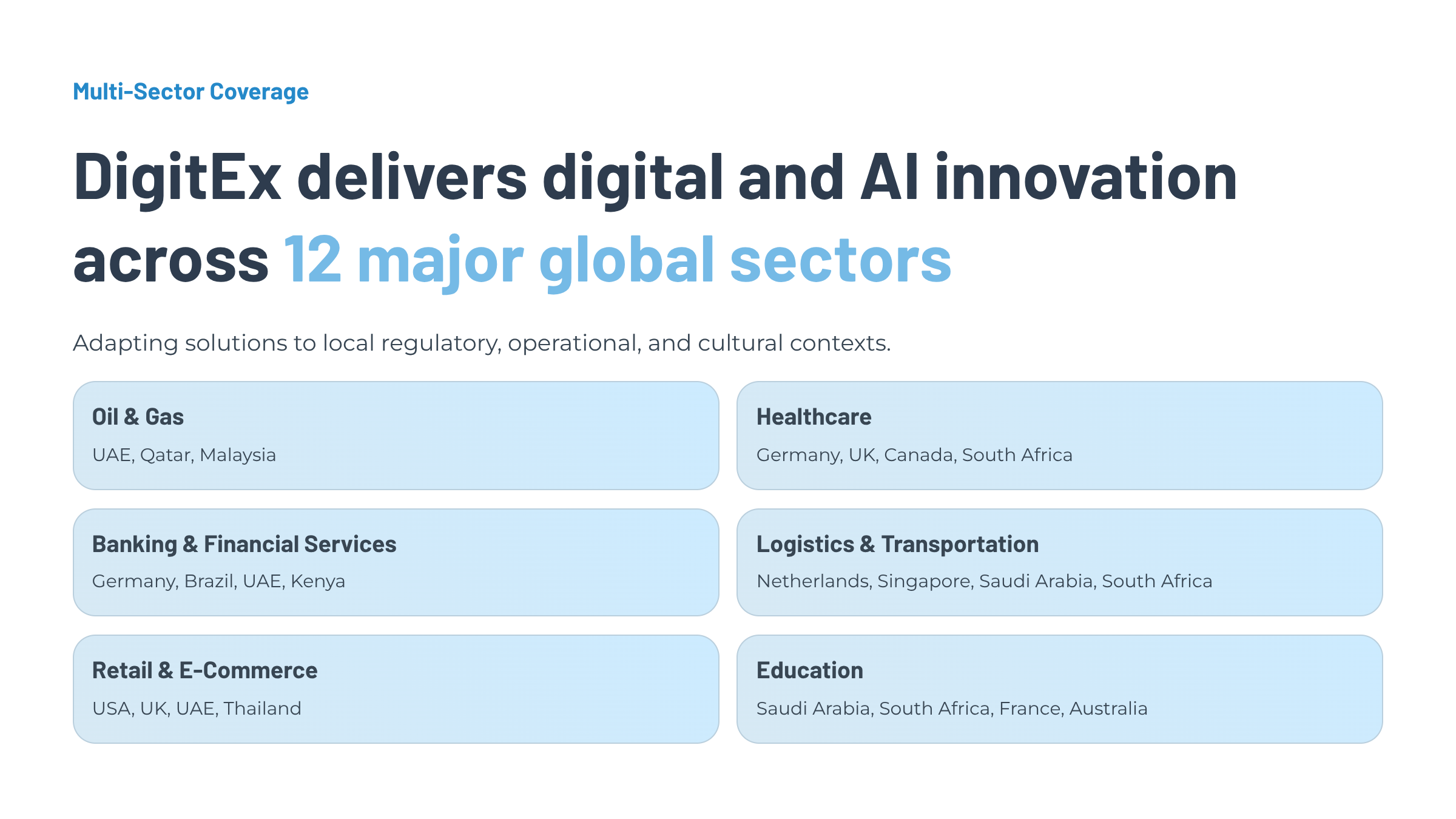 The company operates across various innovative vertical industries such as Oil & Gas, Healthcare, Banking & Financial Services, Logistics & Transportation, Retail & E-commerce, Education & Higher Education, Tourism, Hotels, and Hospitality, Utilities (e.g., Water & Electricity), Manufacturing, Telecommunication, Real Estate & Construction, Agriculture & Fisheries.
